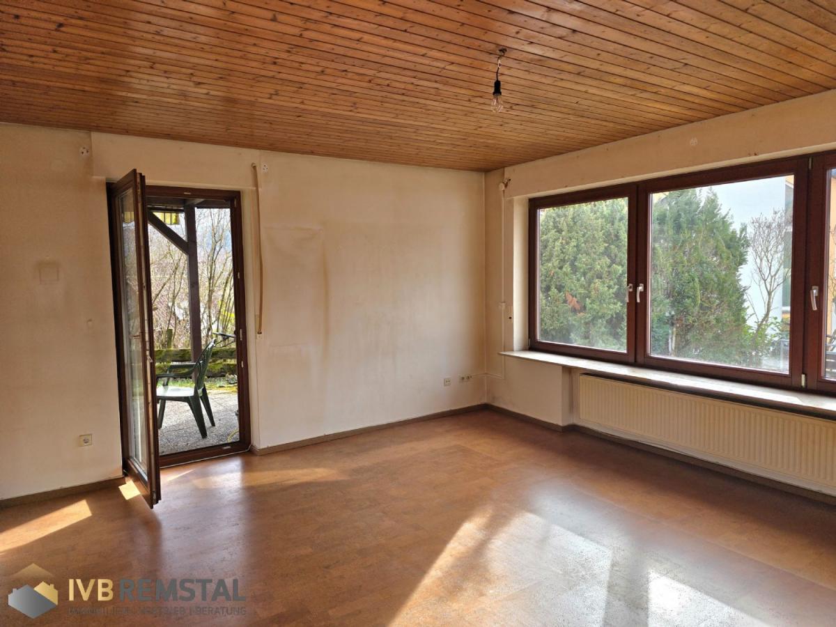 Eine Treppe führt Sie in das Erdgeschoss, wo sich zwei Schlafzimmer, ein Esszimmer sowie ein geräumiges Wohnzimmer befinden, das direkten Zugang zur überdachten Terrasse und dem Garten bietet. Von dort aus gelangen Sie auch auf das begehbare Garagendach. Das Esszimmer ist komfortabel vom Wohnzimmer erreichbar. Ein separates WC und ein modernes Tageslichtbad sowie eine funktionale, wenn auch etwas ältere Einbauküche machen diese Ebene besonders attraktiv für Familien.